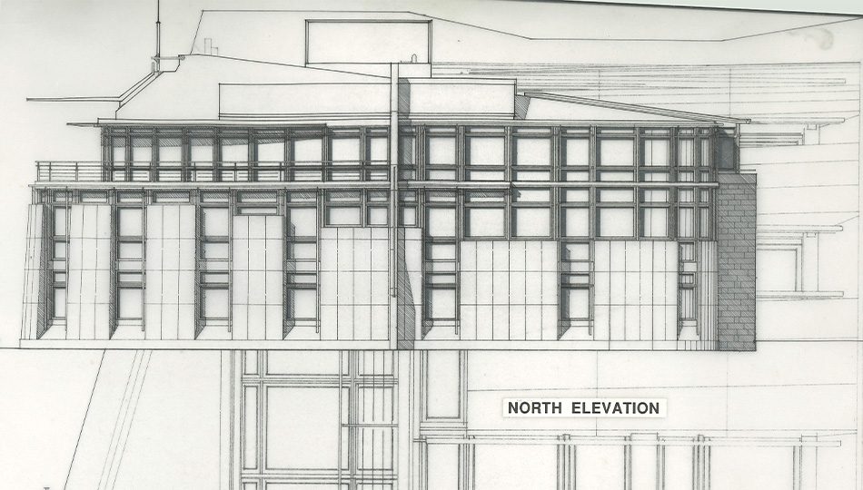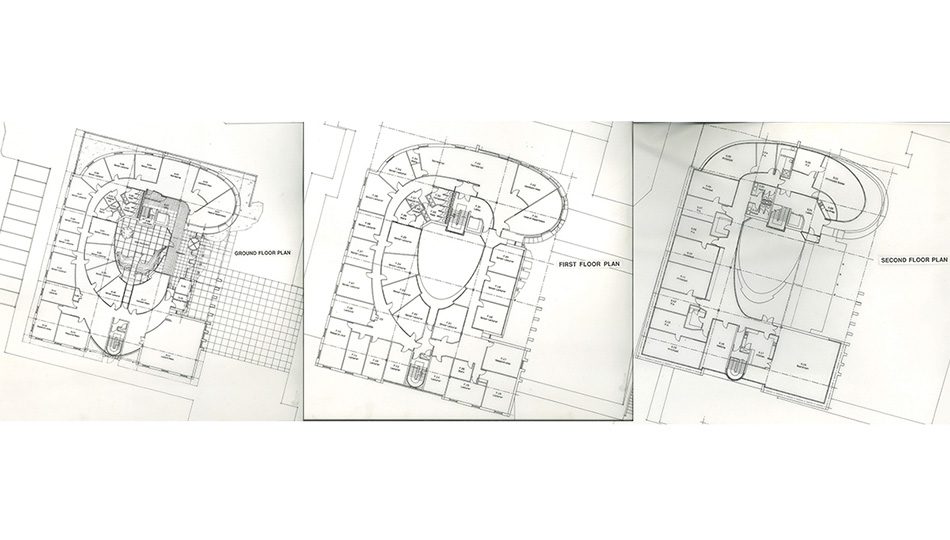 The building’s accommodation is arranged around an open central courtyard. This acted as a compositional device, allowing the planning of a curving internal circulation route. The courtyard with its Japanese style garden and water feature was regularly used for University functions.