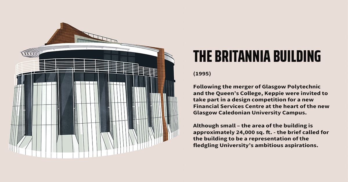 “A relatively “fresh faced” Quantity Surveyor at the time, I was the associate responsible for a number of projects on the new Glasgow Caledonian University campus, but the signature building was the Britannia Building which offered designers the chance to offer a statement about traditional old and new materials mirroring the creation of a new learning environment.