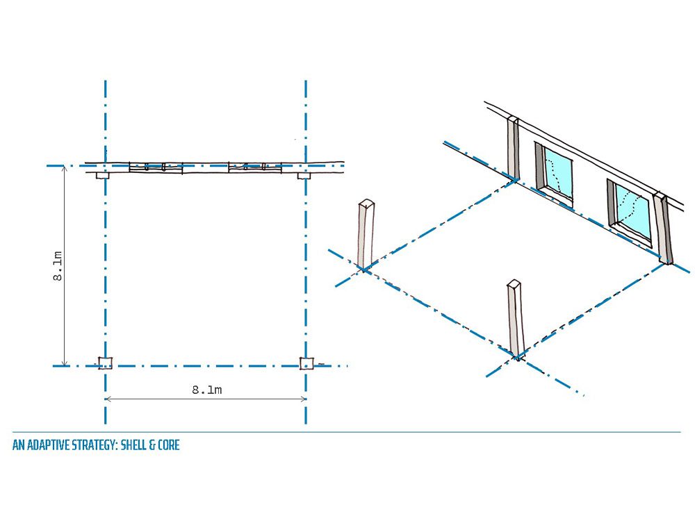 An adaptable strategy then, might simply be one which considers resilience coming from a wide diversity of uses, and the capacity of structures (whether existing or new build) to more easily accommodate cost-effective functional change. For the designer, emphasis shifts to the shell and ensuring its basic alignment with circular economy thinking.