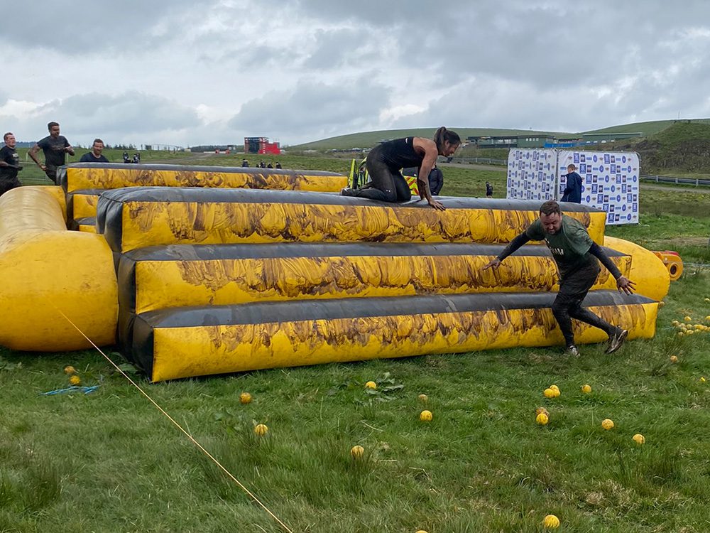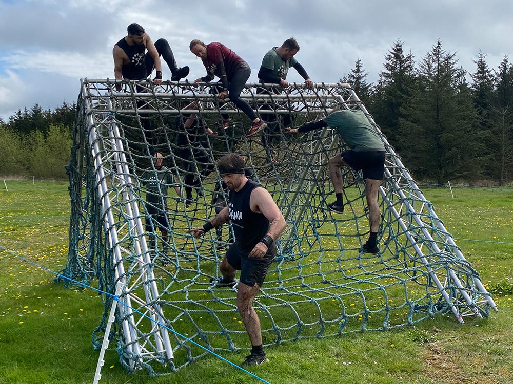 Over the next 2.5 hours we worked our way through the deep mud, grass, moss, stinging nettles and swam through bogs and ditches on uneven terrain. The obstacles faced by the team were high wooden fences, monkey bars and crawling through barbed wire, netting, and dark tunnels, all in a race to the finish line. Every time you thought it was nearly over and the end was in sight, another obstacle appeared in what was the longest 7k ever (our smartwatches would later tell us it was far longer!).