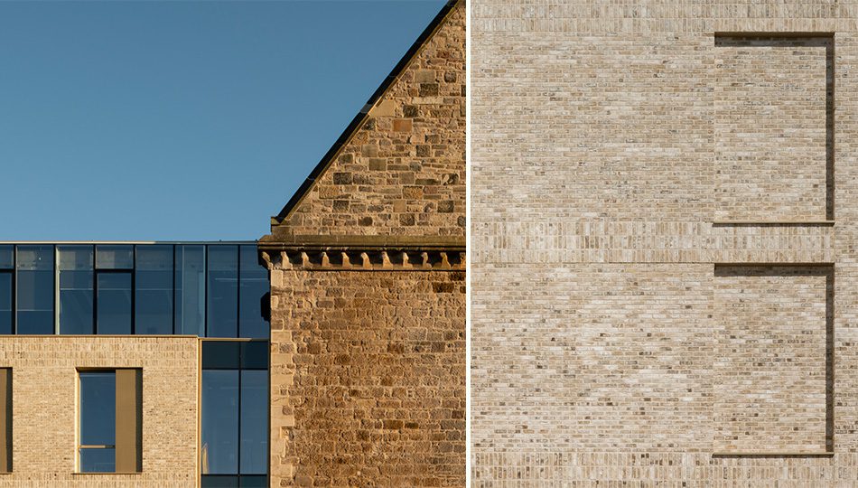 The new build element is constructed from a rustic blonde brick carefully selected to compliment the Kenmure sandstone of Leiper’s façade. Together with the exposed, post-tensioned, concrete frame, this choice of material evokes a sense of permanence, quality and longevity.