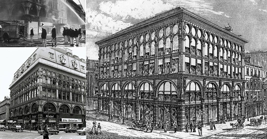 I next encountered the building in 1987, when it caught fire. I was a student, at Glasgow Tech, and out filming with some classmates. We’d just humphed all our gear to the top of Glasgow University tower when we spied a huge black smoke signal emerging from the city centre.