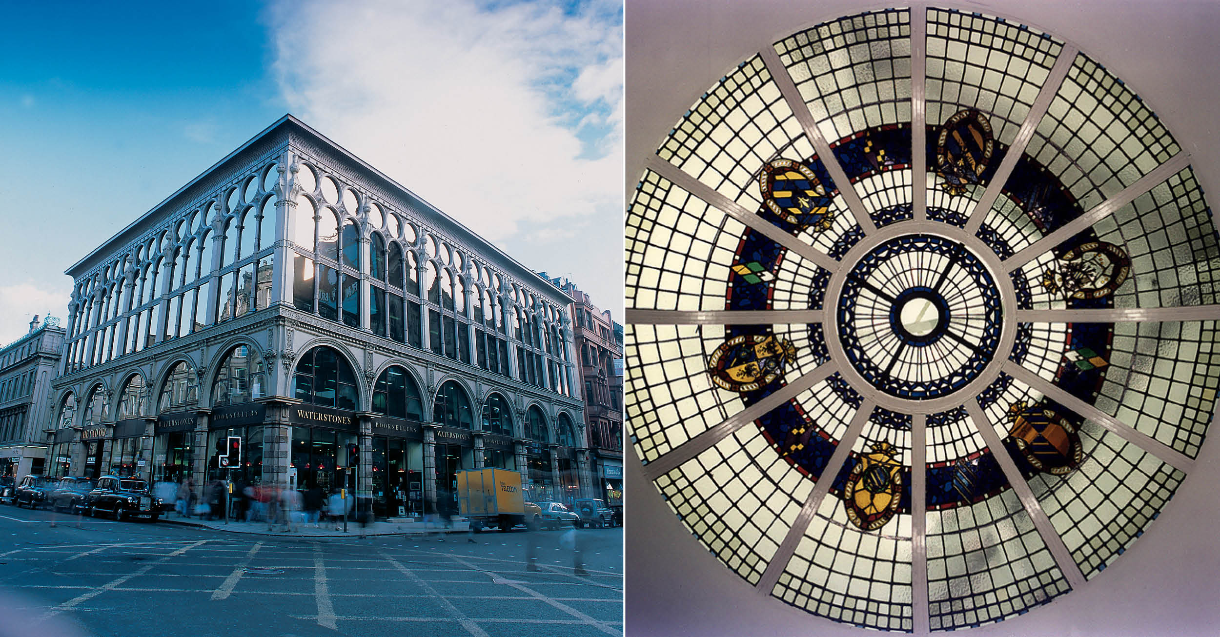 In the early 1870s John Honeyman received his first retail commissions. Honeyman often used cast-iron columns for galleries in churches to minimise restricted viewing, and in 1864 he used a cast-iron frame to maximise the window wall for G & J Burns warehouse at 30 Jamaica Street.