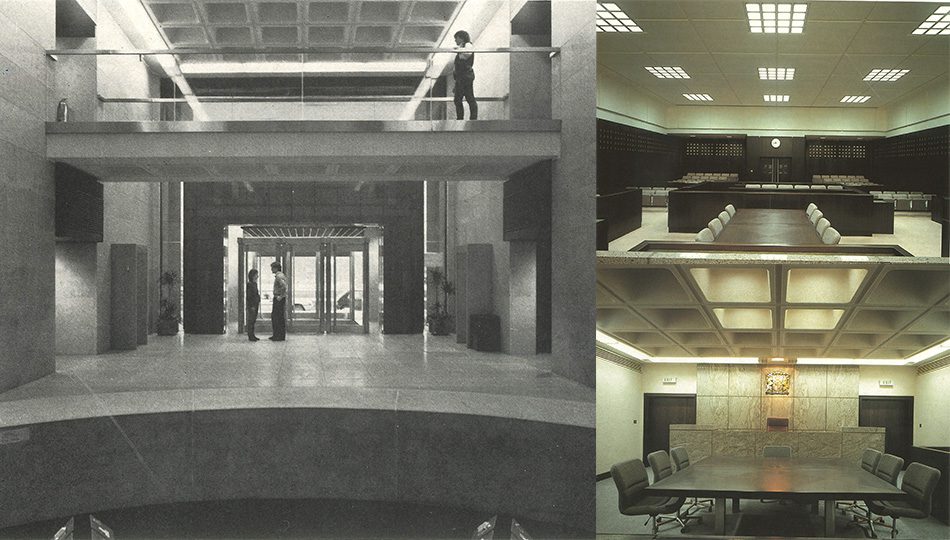 The brief for the new building included four criminal jury courts, eleven general purpose courts, a diet court (a court to debate points of law), an appeal court, two juvenile courts, a civil court, and a criminal custody court.
