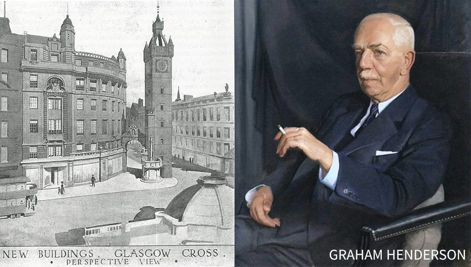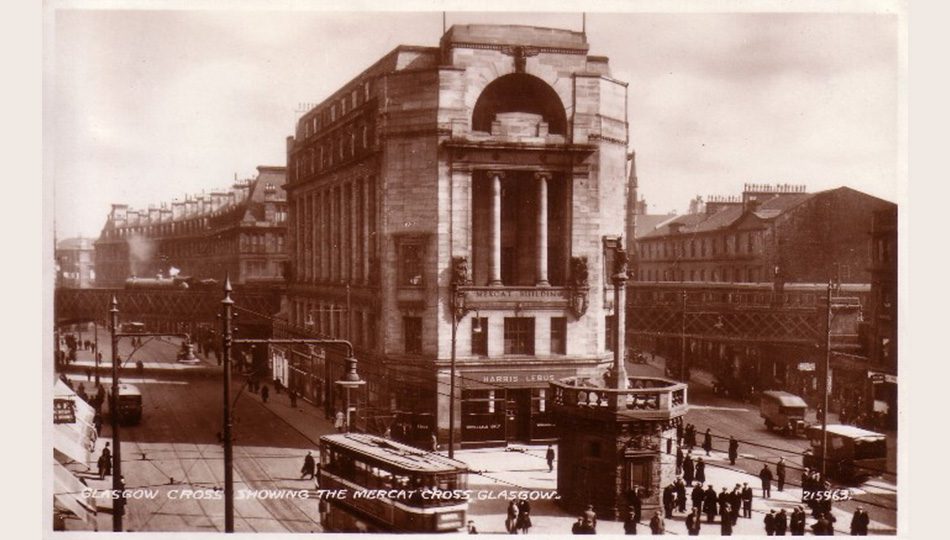 During Victorian and Edwardian times, the constricted nature of the junction of High Street as it met Glasgow Cross caused severe traffic problems. The destruction of the Tontine Hotel by fire in 1911 prompted a radical reassessment of the Cross, and Honeyman and Keppie’s scheme for the site, submitted in July 1914, won Glasgow Corporation’s competition.