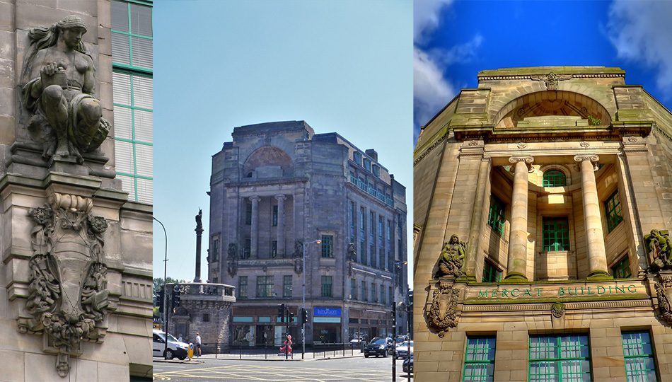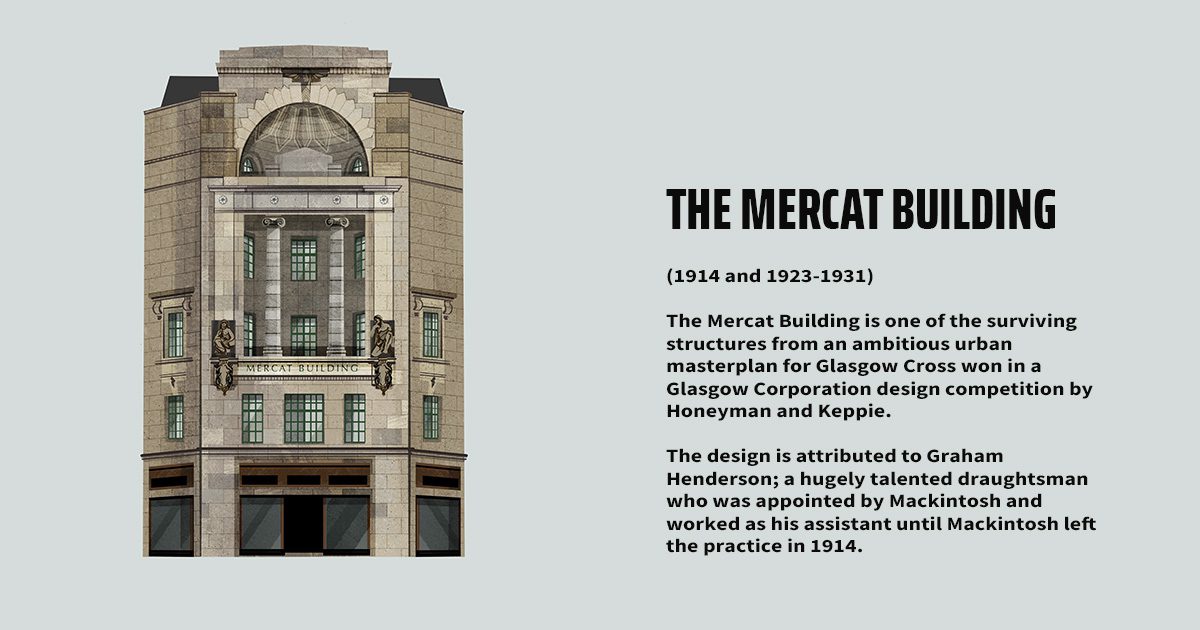 The Mercat Building was referred to as ‘Building B’, designed from 1928 and completed in 1931. There is no note of a design for a ‘Building C’ to complete the composition, which remains incomplete today.
