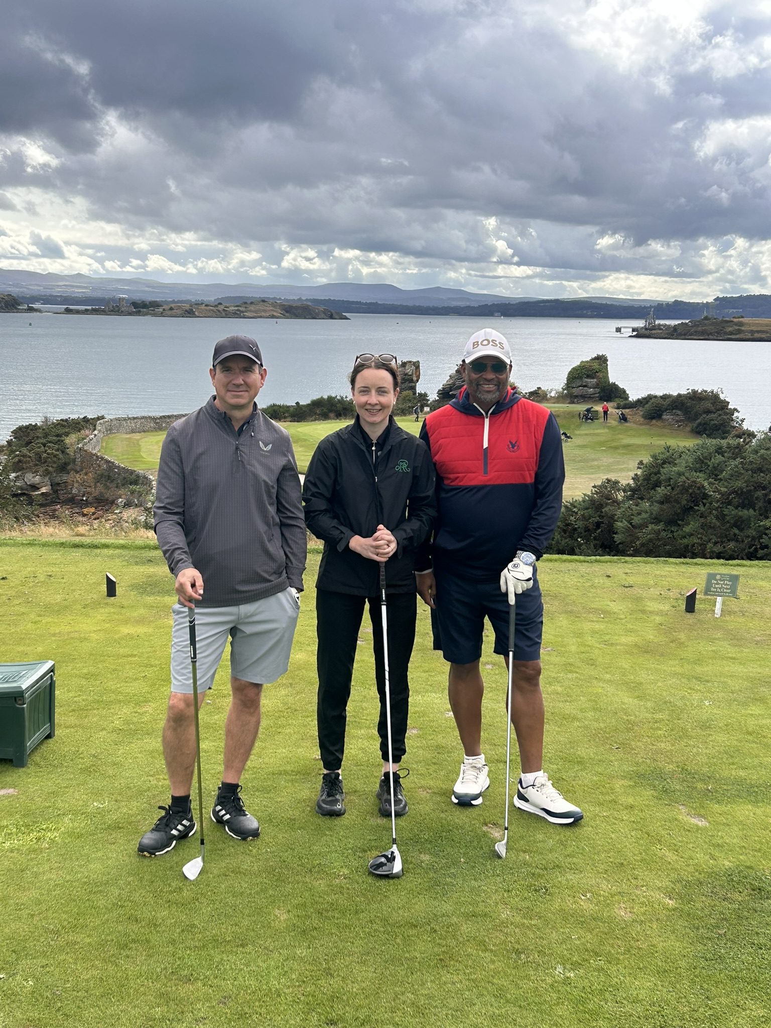 The day began with players gathering at the clubhouse to enjoy breakfast rolls alongside tea and coffee, before heading out for a quick practice putt. Soon after, all eyes were on the first tee. The teams lined up for their annual photo shoot, with the team lineups as follows:
