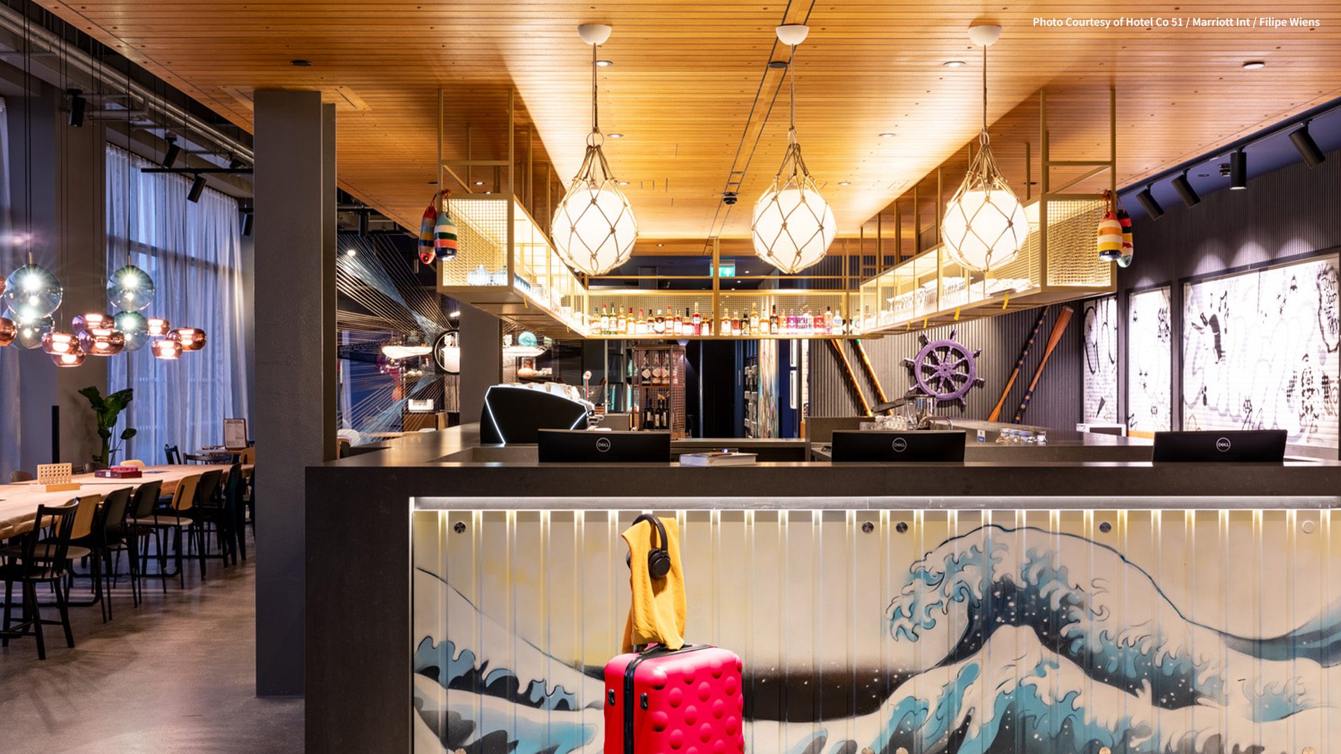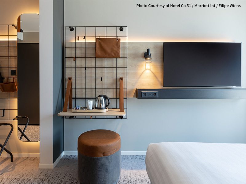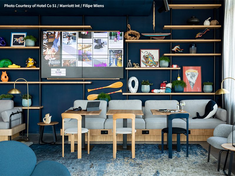 The three-star Moxy lifestyle hotels, offer affordable luxury to guests with a vibrant, young spirit at heart. At ground level the publicly accessible bar and restaurant spills out onto the boulevard, activating the streetscape whilst providing amenity for refreshments or place to stop and relax along the way.