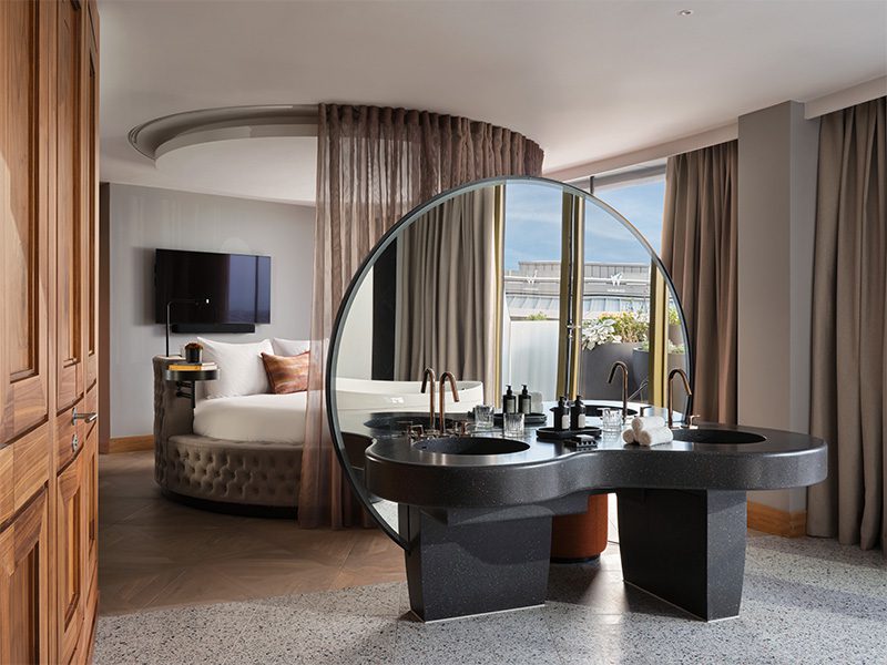 James Craig Walk, a listed building, provides a boutique hotel environment, while the Quarter House – connected to The Ribbon Building via an amphitheatre gallery and Cinematic Tunnel – houses most of the guest rooms. With over 60 room types, including the impressive WOW and Extreme WOW Suites, Keppie worked closely with specialist suppliers and sub-contractors to ensure the spatial, material, furniture, lighting and technological elements worked seamlessly together in order achieve the high standard of guest experience required.